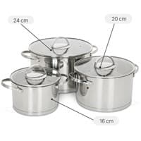 - Kích thước đa dạng: Bộ 3 nồi Delites có đường kính lần lượt là 16, 20, 24 cm, phù hợp cho việc nấu các món ăn như canh, cháo, súp, món kho cho gia đình từ 2 - 5 người.