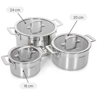 Gồm 3 nồi với kích thước 16 cm, 20 cm và 24 cm, phù hợp cho gia đình đông người.