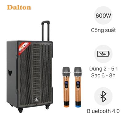 Ngoài sử dụng nguồn điện trực tiếp, loa kéo Dalton còn có thể sạc (khoảng 6-8 tiếng) để sử dụng được liên tục trong 4-6 tiếng đáp ứng tốt nhu cầu thưởng thức âm nhạc của bạn kể cả trong các buổi tiệc hoặc buổi dã ngoại.