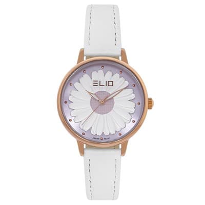 Đồng hồ ELIO Flower 35 mm Nữ EL105-03 có thiết kế đơn giản, nổi bật với hoa cúc trắng trên mặt đồng hồ, phù hợp với các cô nàng yêu thích sự nhẹ nhàng.