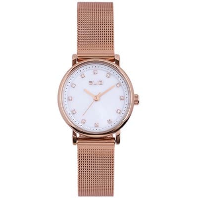 - Đồng hồ ELIO Nàng Thơ 28 mm Nữ ES058-01 có phần khung viền hợp kim không bị oxy hóa, cứng cáp. Dây đeo hợp kim chắc chắn, sáng bóng