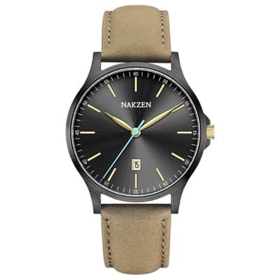 • Đồng hồ được trang bị dây đeo bằng da tổng hợp mang lại vẻ đẹp thanh lịch, tạo cảm giác thoải mái và nhẹ nhàng cho người đeo. Ngoài ra, đồng hồ Nakzen còn được trang bị phần khung viền bằng chất liệu thép không gỉ mạ Ion, có khả năng hạn chế ăn mòn trước tác động từ môi trường mang lại sự sang trọng và bền bỉ theo năm tháng cho người dùng.