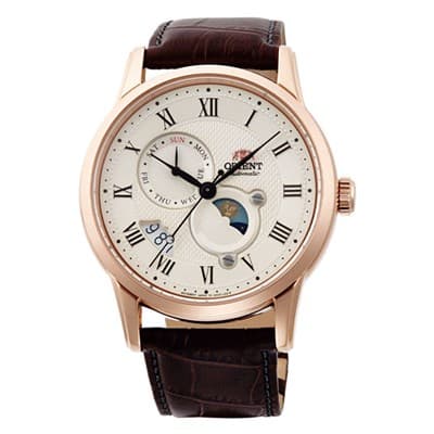 Đồng hồ Orient Sun & Moon 42.5 mm Nam RA-AK0007S10B• Với đường kính mặt lên đến 42.5 mm, đồng hồ này thích hợp cho nam giới có cổ tay vừa. Mặt kính Sapphire chất lượng giúp bảo vệ mặt đồng hồ khỏi trầy xước thông thường, cho phép bạn sử dụng hàng ngày mà không cần lo lắng.