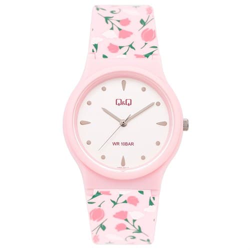 Đồng hồ Q&Q 34 mm Nữ V06A-007VY mang đến vẻ ngoài dễ thương với hoa văn ngọt ngào, phù hợp cho những ai yêu thích phong cách nữ tính.