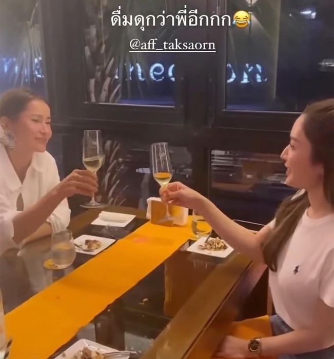 “จริงๆ เราได้เริ่มรู้จักและสนิทกันมากขึ้นตอนที่เล่นละครเรื่องแค้นค่ะ ตอนนั้นทั้งคู่ก็ค่อนข้างโตแล้ว ก็เลยมีเรื่องให้แลกเปลี่ยนกันเยอะขึ้น ซึ่งมันก็ทำให้เราคุยกันถูกคอ เขาเปิดใจเราก็เปิด พอได้ไปนั่งกับเขาก็เลยชวนเลี้ยงวันเกิดให้เขากับพี่ป๊อบ บางทีเขาก็ทำงานให้เราด้วย แล้ววันนั้นก็มีงานเลี้ยงด้วย เลยอยากสั่งแชมเปญคนละแก้ว เพื่อเพิ่มบรรยากาศ แต่ไม่ได้ตั้งใจจะเมากันนะคะ แต่สุดท้ายเขาทำหน้าอุ๊ย เราก็เลยแอบคิดว่า อ้าว! เราชวนเขาดื่มเยอะไปหรือเปล่า แต่เขาถามมาว่า 'พี่แอนสั่งแค่แก้วเดียวหรือคะ?' เราก็อ้าว ดูเหมือนเขาจะไม่อยากได้แค่แก้วเดียวรึเปล่า เพราะจริงๆ พี่ไหวแค่ 3 แก้วค่ะ ถ้ามากกว่านั้นคงต้องนอนแล้ว เขาก็เลยบอกว่า 'โอเคค่ะ ขวดนึงก็ได้ค่ะ' (หัวเราะ) รู้เรื่องกันแล้วค่ะ”