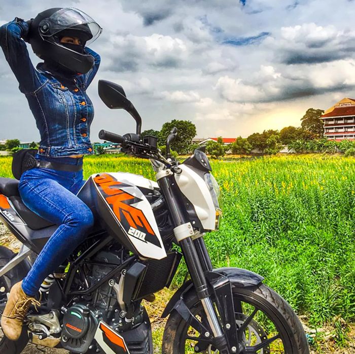 2. เธอขี่บิ๊กไบค์มาแล้วกว่า 7 ปี เป็นสาวสวยที่มีชื่อเสียงในวงการไบค์เกอร์และยังเคยเข้าร่วมการแข่งขัน คว้ารางวัลมาแล้วมากมายทั้งในประเทศและต่างประเทศ
