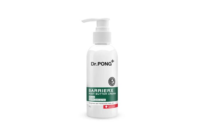 Dr.PONG BarrierX Body Butter Cream เป็นครีมบำรุงผิวที่อุดมไปด้วยสารสกัดจากธรรมชาติหลากหลายชนิด ไม่ว่าจะเป็น Ceramides, Phytosphingosine และ Fatty Acids ซึ่งจะช่วยให้ผิวแข็งแรงและปกป้องจากมลภาวะได้ดี นอกจากนี้ยังช่วยลดการระคายเคือง เติมความชุ่มชื้นให้กับผิวที่ขาดน้ำ และฟื้นฟูผิวให้ดูสุขภาพดี เหมาะสำหรับผู้ที่มีปัญหาผิวแห้งหรือผิวแพ้ง่าย