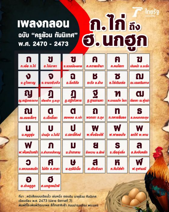 กลอนท่อง ก ไก่ ถึง ฮ นกฮูก มีที่มาจากไหน