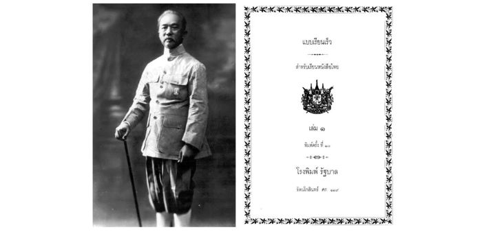 6. แบบเรียนมูลศึกษา กรมการศึกษาธิการ (แบบเรียนเร็วย่อ), โรงพิมพ์สามมิตร์, ร.ศ. 129