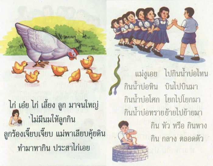 คำกลอนส่วนหนึ่งจากหนังสือ "แบบเรียน ก.ไก่ อนุบาล" บริษัทประชาช่าง ฉบับภาพถ่าย พ.ศ. 2539