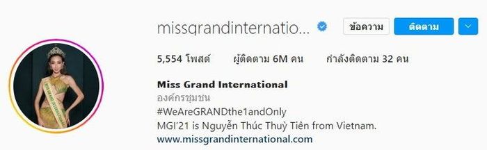 ก่อนวันประกวดบนอินสตาแกรม Miss Grand International 2022 มียอดผู้ติดตามกว่า 6 ล้านคน