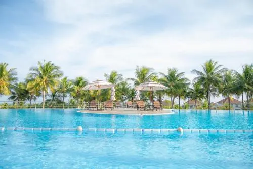 Trong khuôn viên resort có đến tận 2 hồ bơi, hồ bơi có chiều sâu lần lượt là 0.4m, 0.6m và 1,2m nên dù là trẻ nhỏ hay người lớn thì đều có thể thỏa thích bơi lội mà không sợ nguy hiểm. Thời gian mở cửa của hồ bơi: 6h – 18h30 hàng ngày.