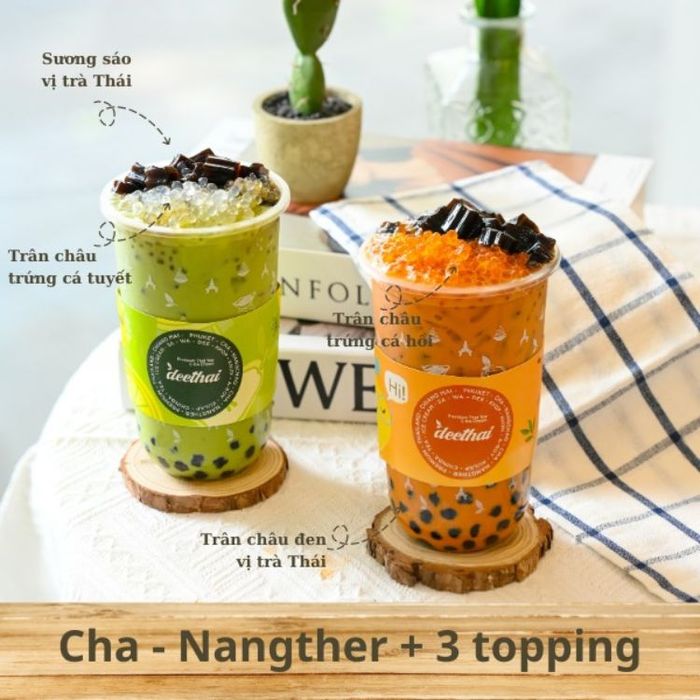 Deethai - Premium Thai Tea & Dessert là điểm đến mới nổi tại Quận 1, TP HCM, thu hút đông đảo giới trẻ nhờ hương vị trà sữa Thái cao cấp. Khác biệt với các quán trà sữa Thái thông thường, Deethai nổi bật với cốt trà thơm đậm đà và topping độc đáo như trân châu trứng cá hồi và trứng cá tuyết giòn tan. Các món đặc trưng được yêu thích nhất bao gồm Cha - Nangther 3 topping và Cha - Nangther kem trà Thái.