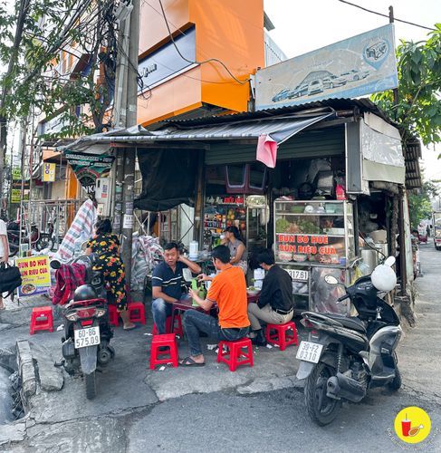 Quán bún nhỏ bé, nằm lặng lẽ bên đường, giản dị mà khó nhận ra. Thường thì chỉ người quen mới biết, còn không thấy quán đông khách là cứ thế ghé vào và từ đó thành nơi quen thuộc mà không hay.