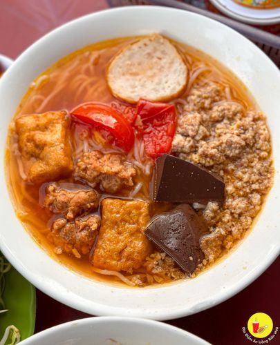 Ngoài bún bò, quán còn phục vụ 🧮 Bún riêu 25k với riêu cua đầy ắp, còn có mọc tôm, đậu hũ, huyết,... rất đáng thử.