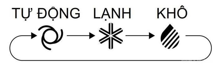Dry (biểu tượng giọt nước): Chế độ khô, giảm nhiệt độ và độ ẩm.