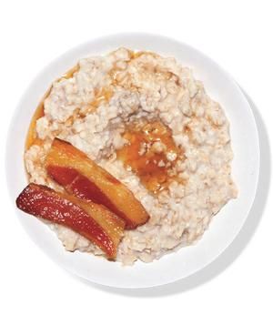 Hướng dẫn cách làm: Chiên thịt ba chỉ cho đến khi giòn, sau đó trộn vào yến mạch và thêm một ít siro cây phong. Cuối cùng, thưởng thức ngay.