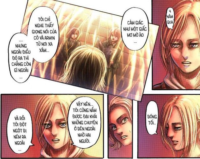 Annie vẫn tỉnh táo, nghe câu chuyện từ Hitch và Armin suốt 4 năm qua như một giấc mơ mờ mịt. Dù không hoạt động, cơ thể Annie vẫn được coi là sống và phải chịu lời nguyền 13 năm của Titan như ai khác. Giống như Reiner, Annie chỉ còn 2 năm nữa.