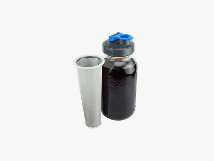 County Line Kitchen là một doanh nghiệp gia đình tại Wisconsin. Cold Brew Maker của họ sử dụng một chiếc lọ Mason jar 2 quart và rổ lọc bằng thép không gỉ đáng tin cậy để pha cà phê lạnh. Nó hoạt động giống như Coffee Gator, nhưng bạn có thể pha được nhiều cà phê hơn. Bạn đổ nhiều cà phê vào rổ lọc, rót lên đến 64 ounce nước lạnh qua từ từ và để nó ngồi trong 24 giờ. Khi nó đã xong, lấy rổ lọc ra và sử dụng nắp để đổ.