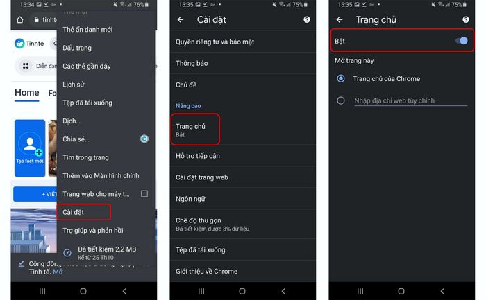 Nút Trang chủ trước đây chỉ có trên một số thiết bị Android, nhưng từ năm 2018, Google đã đưa nó lên tất cả điện thoại và máy tính bảng Android. Để loại bỏ nút Trang chủ, bạn có thể vào Cài đặt trong Chrome, chọn Trang chủ, và từ đó bạn có thể ẩn nút hoặc chọn trang mở ra.Lưu trang dưới dạng PDF