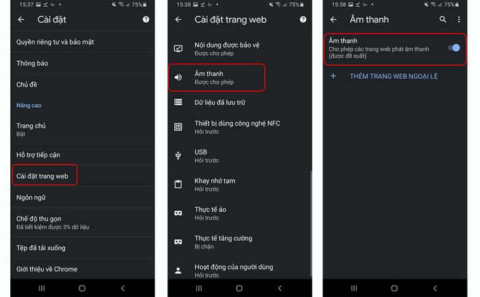 Tính năng Tìm trong trang giúp bạn nhanh chóng tìm kiếm nội dung trên Internet, trong dấu trang và lịch sử duyệt web. Để sử dụng, chỉ cần mở một trang web, nhấn vào biểu tượng Thêm và chọn Tìm trong trang. Sau đó, nhập từ khóa bạn muốn tìm kiếm và kết quả sẽ được làm nổi bật. Bạn có thể cuộn nhanh để xem kết quả bằng cách vuốt lên và xuống trên thanh bên phải.Tắt âm thanh tự động