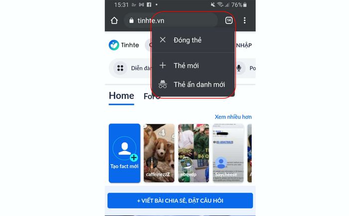 Nếu bạn giữ nút tab trong một giây, một menu sẽ hiện ra với các tùy chọn. Bạn có thể đóng tab hiện tại, tạo tab mới thông thường hoặc tab ẩn danh, cũng có thể chọn tất cả mà không cần rời khỏi màn hình hiện tại.Chỉnh sửa nút trang chủ