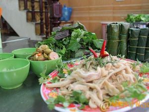 Nem tai là một món ăn dân dã được nhiều người ưa thích. Nguyên liệu chính là tai lợn sau khi được làm sạch, hấp lên và thái mỏng, trộn với thính, ăn chung với bánh tráng, lá sung, sung muối, rau sống và chấm với nước mắm ngọt. Hòa quyện giữa vị giòn của tai lợn, hương thơm của thính, và vị tươi mát của các loại rau tạo nên một trải nghiệm ẩm thực độc đáo. Hãy ghé quán Nem tai Bà Hồng, số 35 Hàng Thùng, Hoàn Kiếm, Hà Nội để thưởng thức. Giá bán 250.000VND/1kg nem tai, 80.000VND/1 suất 2 người, mở cửa từ 6h00 – 23h00.