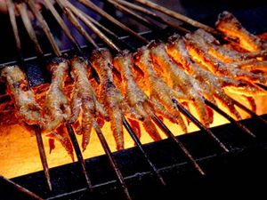 Tại Hà Nội, phố Lý Văn Phức trên đường Nguyễn Thái Học nổi tiếng với món chân gà nướng. Cánh và chân gà được nướng thơm phức, phục vụ kèm khoai lang, bánh mỳ phết mật ong, dưa leo ngâm dấm, và chấm tương ớt... Một bữa tiệc chân gà nướng tuyệt vời chỉ với 50.000VND/người.