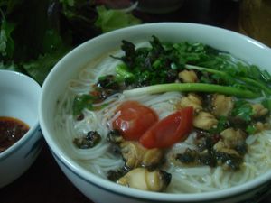 Món bún ốc thơm ngon với hương vị chua chua của dấm, giòn ngon của ốc, ăn kèm với đậu phụ chiên và rau sống. Những quán như Bún ốc bà Sáu – 73A Mai Hắc Đế, Bún ốc bà Lương Khương Thượng, Bún ốc Cô Béo Hòe Nhai, Bún ốc chợ Nguyễn Cao đều là điểm đến lý tưởng với giá từ 20.000VND/bát trở lên.