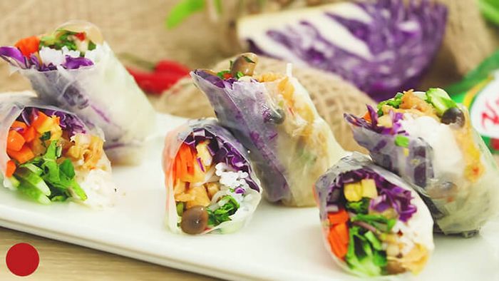 Một lựa chọn thú vị khác cho bữa ăn là món gỏi cuốn chay, với sự đa dạng màu sắc từ bắp cải tím, cà rốt, ớt chuông, thơm, và đậu hủ chiên. Chuẩn bị món này không mất quá nhiều thời gian vì bạn chỉ cần tập trung vào việc chế biến các nguyên liệu chính. Gỏi cuốn ngũ sắc chay không chỉ đẹp mắt với sự hòa quyện của các màu sắc, mà còn hấp dẫn với hương vị béo béo từ đậu hủ chiên và tươi mát từ rau củ. Khi chấm vào nước mắm chay, bạn sẽ trải nghiệm vị mặn mặn, ngọt chua nhẹ.