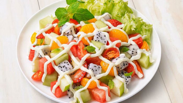 Món salad này chắc chắn là sự kết hợp tuyệt vời cho mọi độ tuổi, thường được phục vụ cùng các món chính để làm mới khẩu vị và giải nhiệt. Không chỉ nổi tiếng vì đơn giản trong cách chế biến, mà còn vì hàm lượng vitamin và chất xơ cao, giúp tái tạo làn da và tăng cường hệ tiêu hóa. Chỉ cần sử dụng xà lách làm cơ sở, bạn có thể kết hợp với những loại trái cây phổ biến như táo, thanh long, lê, cà chua, và thêm một chút sốt mayonnaise nhẹ nhàng.