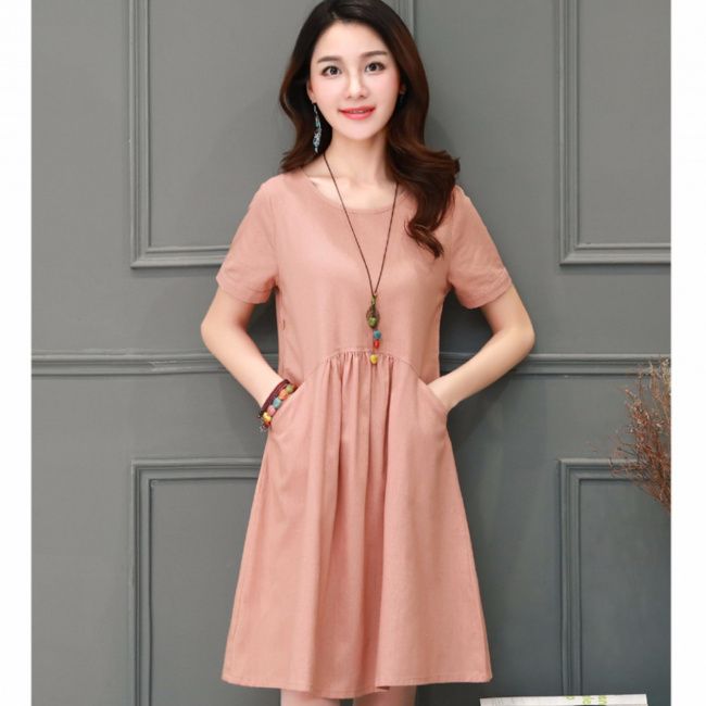 Đầm suông rúm ly màu hồng đất, đáng yêu đến không thể chối từ.