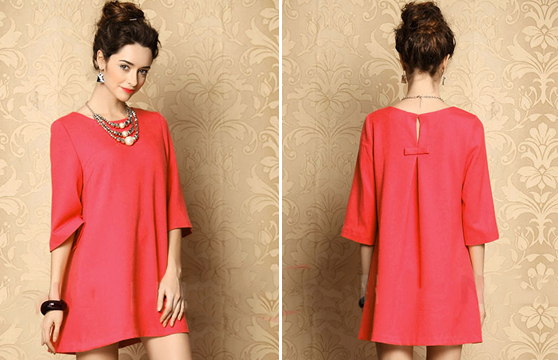 Đầm suông tay lửng với chiếc nơ duyên dáng ở phía sau lưng.