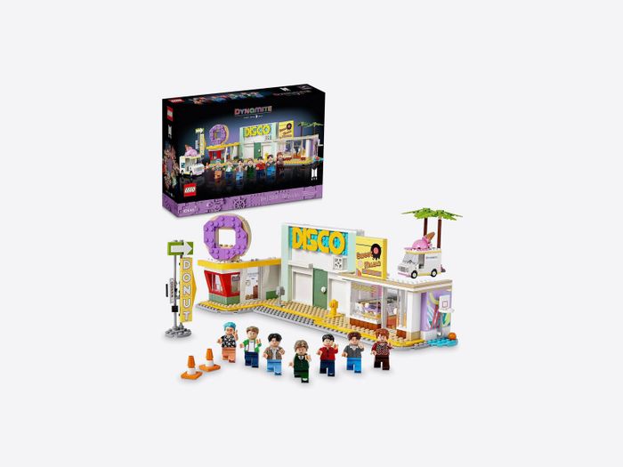 Bộ này với chủ đề BTS đi kèm với bảy minifig của các thành viên trong ban nhạc. Bộ này gợi nhớ đến video âm nhạc Dynamite—xin lỗi nếu bài hát này bây giờ đang bám vào đầu bạn.
