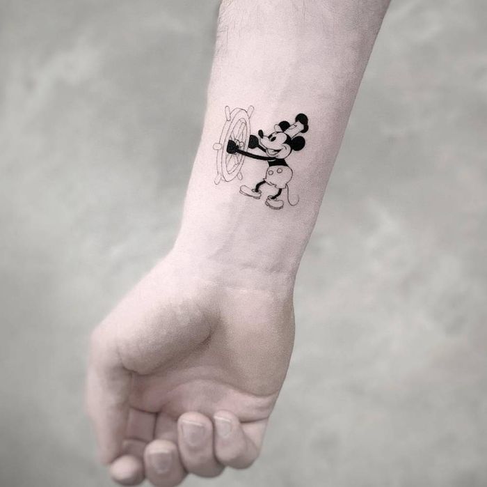 Tattoo chuột Mickey lái tàu đầy phong cách