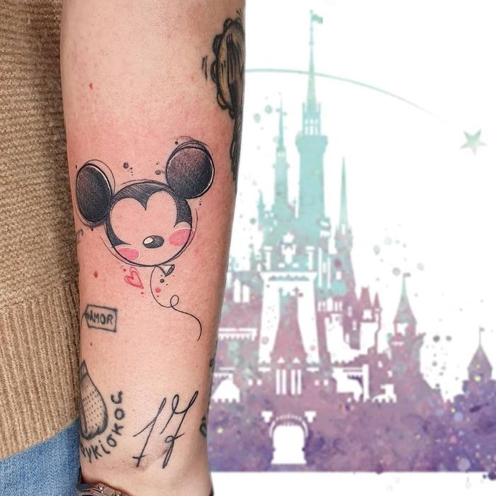 Tattoo chuột Mickey với hình ảnh bong bóng bay