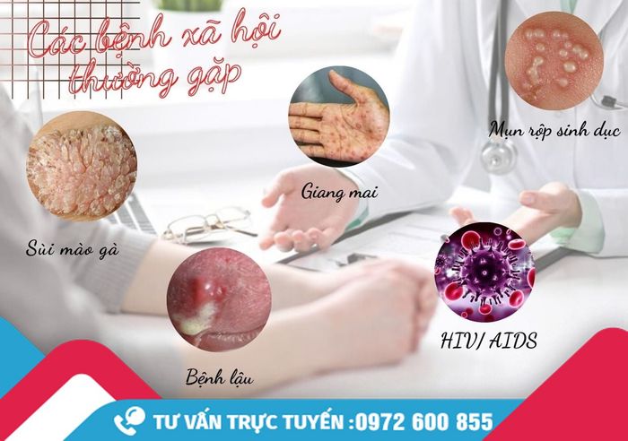 - Bệnh xã hội: Sùi mào gà, giang mai, lậu, mụn rộp sinh dục...