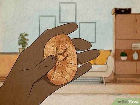 Bạn cũng có thể tạo ra một vật phong thủy gỗ để mang theo. Tìm một mảnh gỗ tròn có kích thước của một đồng xu, bạn có thể tìm thấy nó ngoài tự nhiên. Nếu bạn có giấy nhám, bạn cũng có thể nhám một mảnh gỗ nhỏ cho đến khi nó có hình dạng gần giống hình tròn. Sử dụng một bút lâu hoặc dụng cụ sắc nhọn để vẽ hoặc khắc biểu tượng may mắn, Fehu (ᚠ). Sau đó, nói: