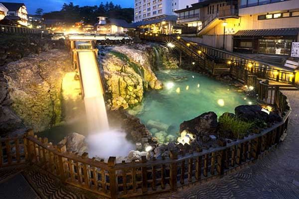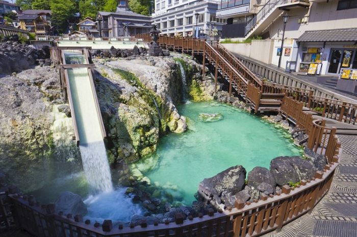 Kusatsu Onsen tọa lạc tại tỉnh Gunma, là một trong những suối nước nóng tự nhiên nổi tiếng nhất Nhật Bản. Khu vực này đã được phát triển thành một khu nghỉ dưỡng sang trọng với nhiều nhà nghỉ, quán cà phê và phòng spa. Khi đặt phòng ở đây, du khách sẽ được ngâm mình miễn phí tại nhiều suối nước nóng khác nhau. Không gian của khu nghỉ dưỡng kết hợp hài hòa giữa nét truyền thống và hiện đại rất ấn tượng. Đặc biệt, đây là suối nước nóng có lượng nước dồi dào nhất Nhật Bản, với nhiệt độ từ 51 độ C đến 94 độ C. Vì nhiệt độ quá cao không thể tắm ngay, nên người ta thường pha thêm nước để làm dịu độ nóng. Khi đến Kusatsu, ngoài việc tắm Onsen, du khách còn có cơ hội trải nghiệm nghi thức Yumomi, một truyền thống khuấy nước bằng thanh gỗ để hạ nhiệt độ của suối kết hợp với những bài ca vui tươi.