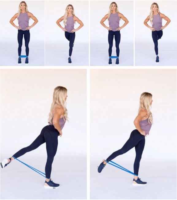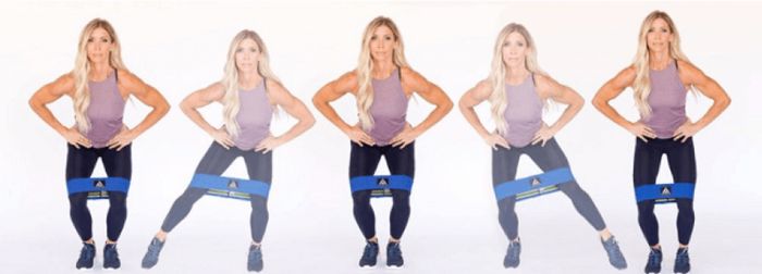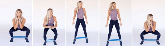 Để thực hiện đúng bài tập thân dưới này, đặt dây kháng lực ở mắt cá chân và có thể điều chỉnh độ cao phù hợp với trình độ của bạn. Tư thế chuẩn bị giống như bài Air Squat.