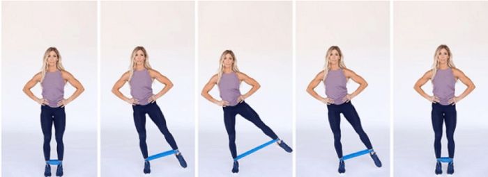 Đây cũng là một bài tập phổ biến giúp cải thiện hõm hông. Cách thực hiện tương tự như Kickback. Đứng thẳng và đẩy chân sang hai bên. Nhớ giữ thẳng lưng khi thực hiện động tác.