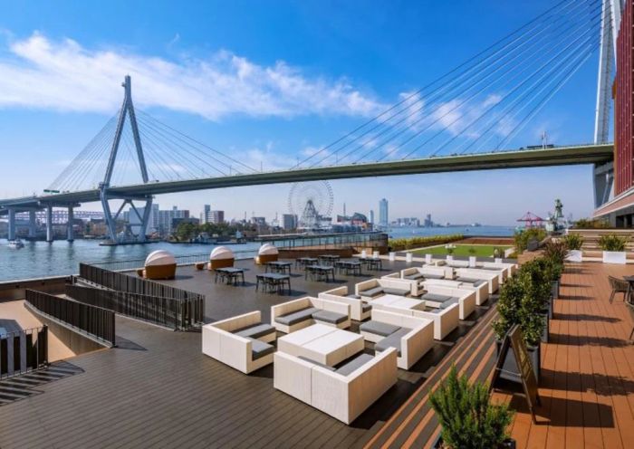 Liber Hotel will impress you at first glance with its elegant design and stunning lobby. From the outdoor terrace, you can enjoy panoramic views of Osaka Bay and the beautiful Tempozan Ohashi Bridge. After a day at Universal Studios Japan, unwind at the onsen baths and outdoor riverside pools, or rejuvenate in the sauna.