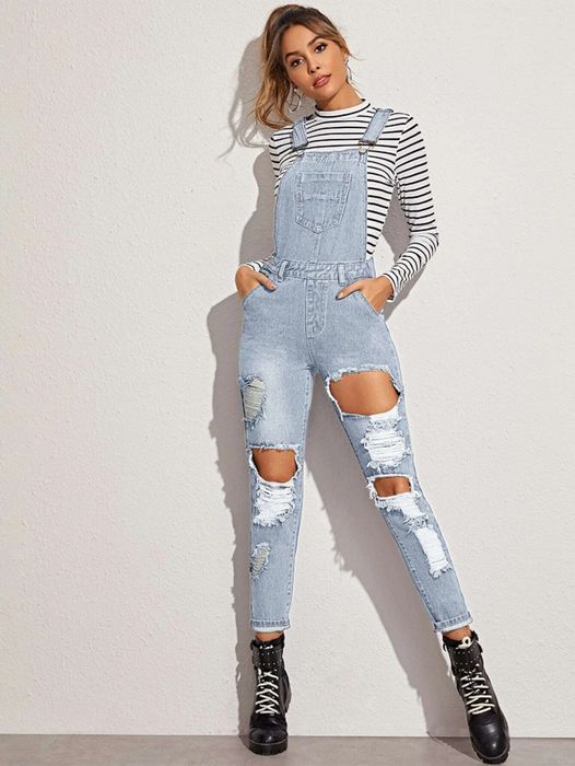 Yếm Jeans Kết Hợp Áo Pull và Sneakers - Phong Cách Sang Chảnh, Mạnh Mẽ (Nguồn: Internet)