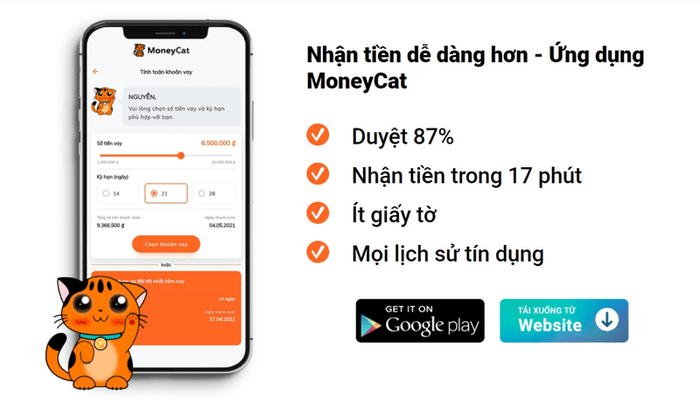 MoneyCat là lựa chọn phổ biến để vay tiền qua ứng dụng, giúp người dùng giải quyết các vấn đề tài chính. Theo chính sách mới nhất, bạn có thể vay tối đa 10 triệu đồng trong khoảng thời gian từ 3 đến 6 tháng. Với khoản vay này, lãi suất sẽ dao động từ 12 đến 18,25% mỗi năm.