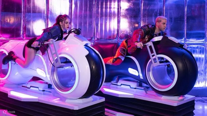 This weekend, challenge yourself at JP Sport Games – a cutting-edge sports entertainment zone on the 7th floor of Gigamall. It features premium games like F1 racing, archery, infrared shooting, and immersive experiences such as Tron Legacy, motorbike racing, and the unique "Robot Arm" with VR technology.