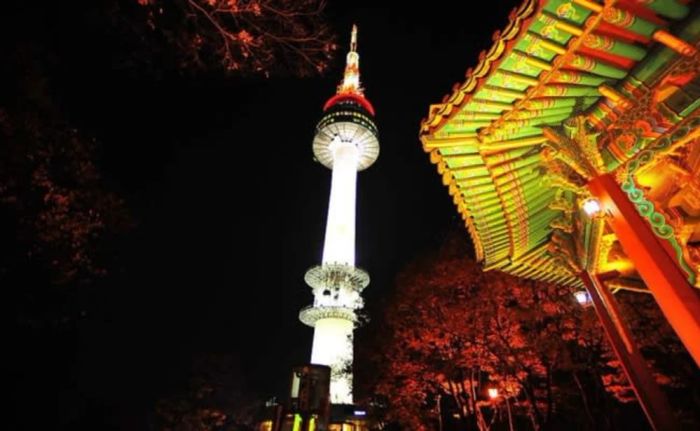 Tháp N-Seoul trên đỉnh Namsan là điểm ngắm pháo hoa đẹp tại Seoul. Đây là nơi hẹn hò lãng mạn, hoàn hảo để đón giao thừa cùng người yêu khi du lịch Hàn Quốc.
