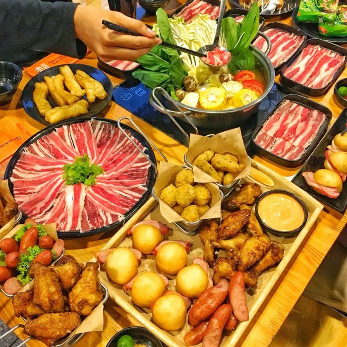 Với không gian rộng rãi trải qua 5 tầng, thiết kế hiện đại và quyến rũ, nhà hàng trên con phố Kim Đồng này không chỉ là địa điểm ưa thích của giới trẻ và dân văn phòng mà còn là sự lựa chọn thường xuyên của các gia đình. Tại A1 Restaurant Kim Đồng, bạn sẽ khám phá một bữa tiệc nướng lẩu Hàn Quốc phong cách với gần 50 món ăn đa dạng, từ các món khai vị như salad chanh leo, salad hoa quả, kim chi, bánh xèo, cơm cuộn maki đến các món chính hấp dẫn như thịt nướng tẩm ướp đậm đà, lẩu thơm lừng nóng hổi và những món tráng miệng ngọt ngào để làm trọn vẹn bữa ăn.