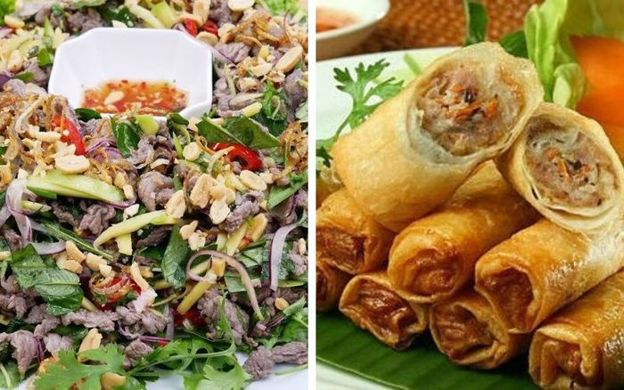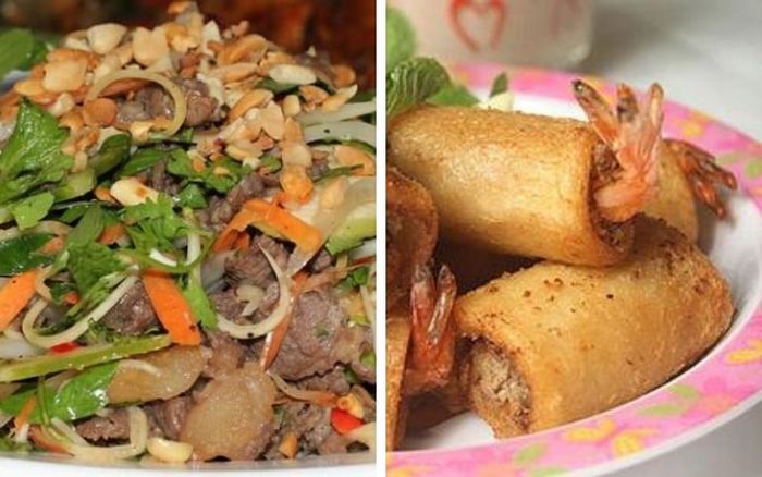 Khai vị: Gỏi bò rau mầm, Nem rán chua ngọt