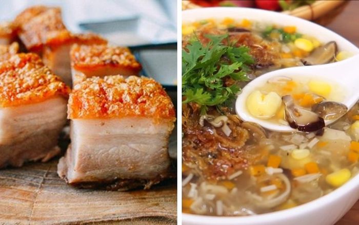 Khai vị: Súp thập cẩm, Thịt heo quay
