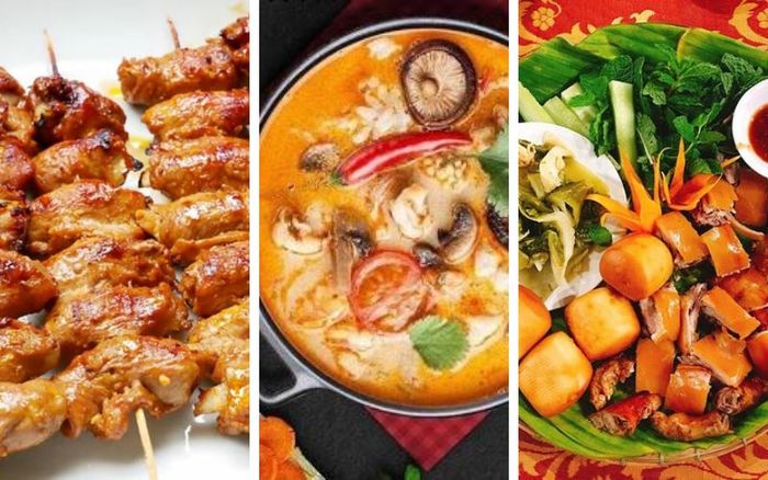Khai vị: Bánh hỏi thịt nướng, Gỏi ngó senMón chính: Heo sữa quay ăn kèm bánh bao, Bò nướng kim tiền, Lẩu Tomyum